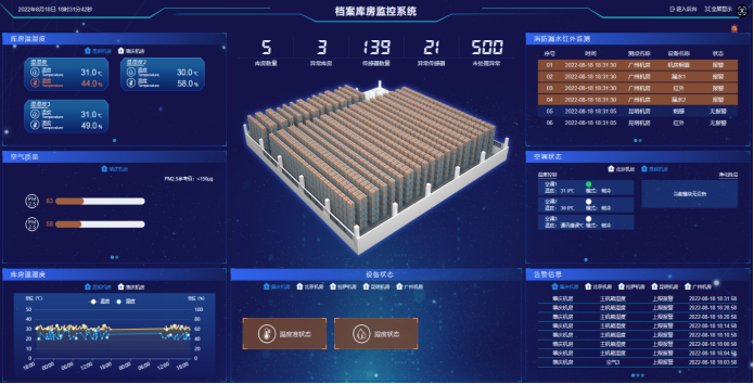 通过对库房环境、安保等进行监控,库房智能监、管、控一体化,功能涵盖库房“十防”(防盗、防火、防虫、防鼠、防潮、防尘、防高温、防光、防霉、防有害气体)。