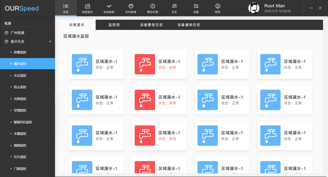 监测对象:对的空调的冷凝水、窗户和易漏水等位置进行监测,且实时报警。