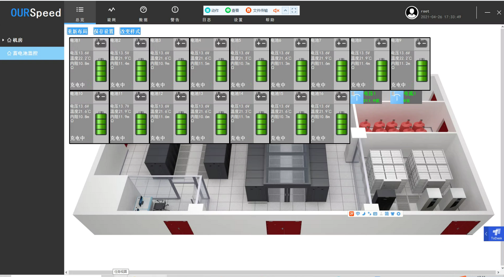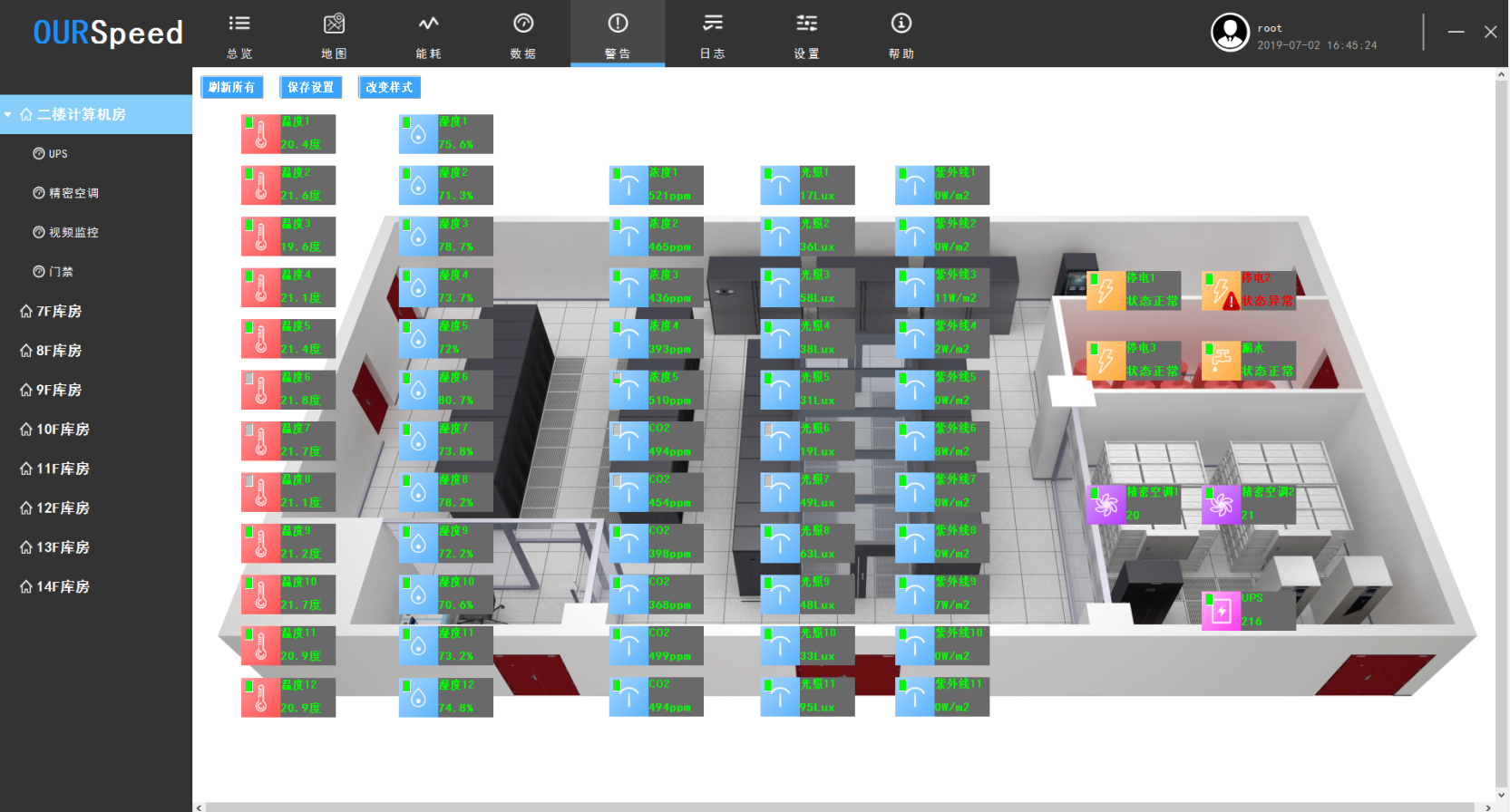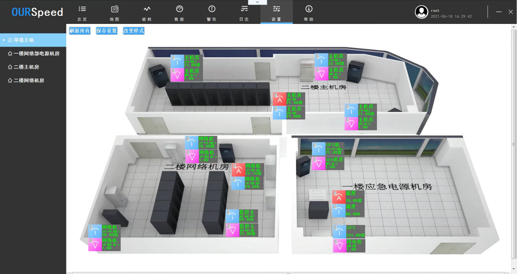 6.具有SMTP邮件报警功能,支持更安全SSL加密的邮件协议,能够提供JSON格式北向接口,提供传感器的多种界面展示风格,比如汽车仪表样式,数码管风格样式等。传感器数据显示样式不少于4种,并且能实时切换各种显示样式,传感器可随时在系统拓扑图上拖动,灵活的将传感器展示在拓扑图上指定位置,支持多种不同权限级别用户登录操作,支持BS端控制空调,实现联动,可以直接接入视频监控,实时查看,可进行大屏展示,也可远程切换后台处理数据异常。