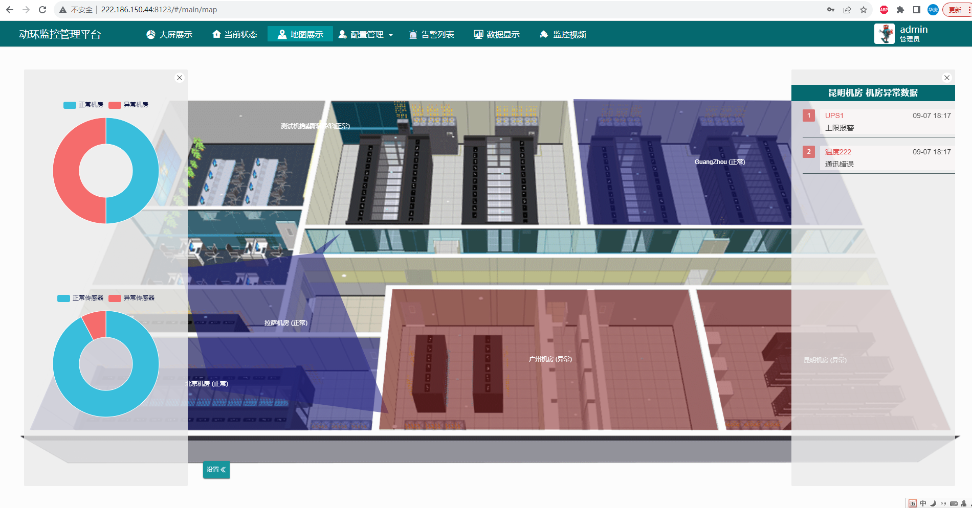 2.环境监测数据:采集各变配电站室内温、湿度数据、浸水状态、水池水位信息,采集空调工作状态(开启/关闭),采用智能空调时,还应支持工作模式及故障告警信息的采集。