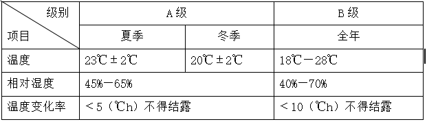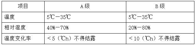 表一:开机时电子数据中心机房的温、湿度要求
