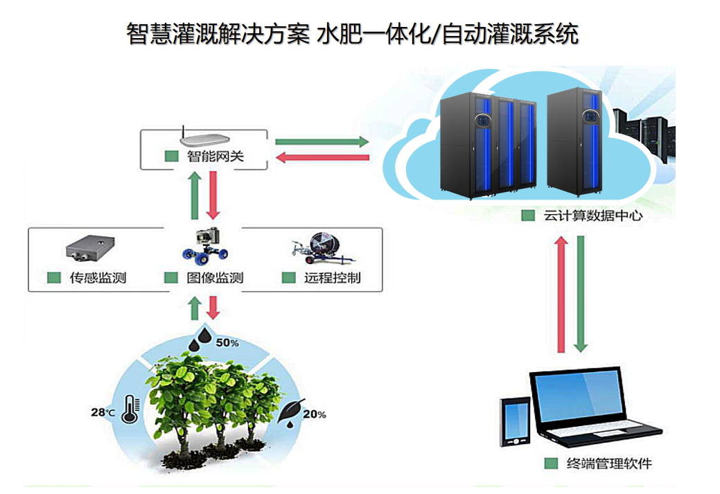 园林环境及墒情监测优势:实现管理人员对园林各个区域的环境温度、湿度、风速、光照、土壤水分等参数进行监测;对园林绿化业务全流程进行精细化管理,对环境变化可进行认为干预,减少植物折损率;对园林喷灌用水量进行监控,为水资源利用提供有效的数据分析支持;根据土壤墒情及环境参数现状建立用水量及灌溉方法数学模型。
