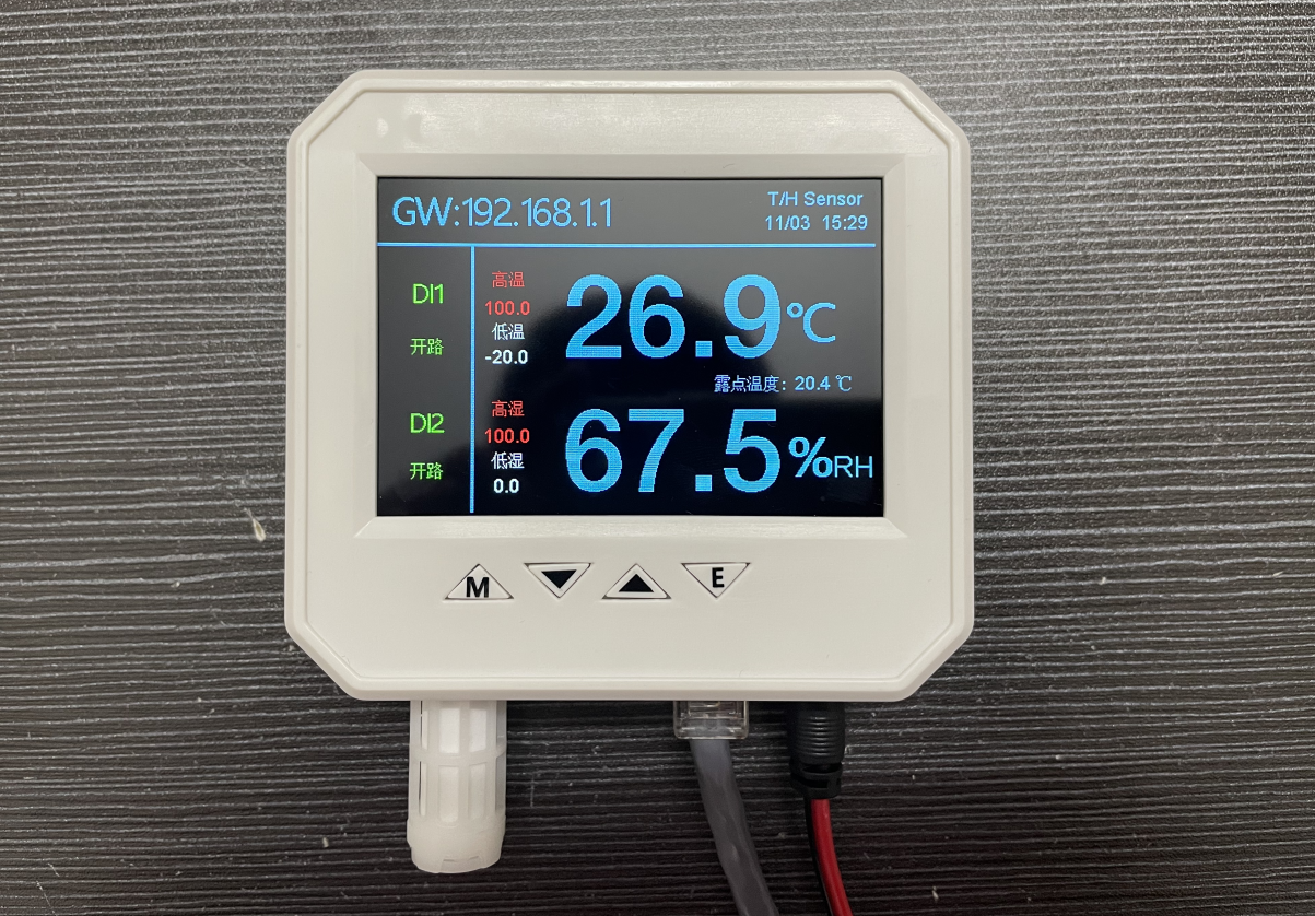 设备支持温湿度阈值报警、开关信号变化报警,报警信息将通过显示屏、声光、通讯协议、web 界面、 邮件等多种方式告警,设置可以通过web 界面或传感器按键进行,支持 DC12-48V 电源适配器供电 , 同时支持 POE 供电 ,不需使用 POE 分配器,设备支持 DC12V 对外供电 ,当使用此项功能时候 ,需使用高于 DC15V 电源为传感器供电。